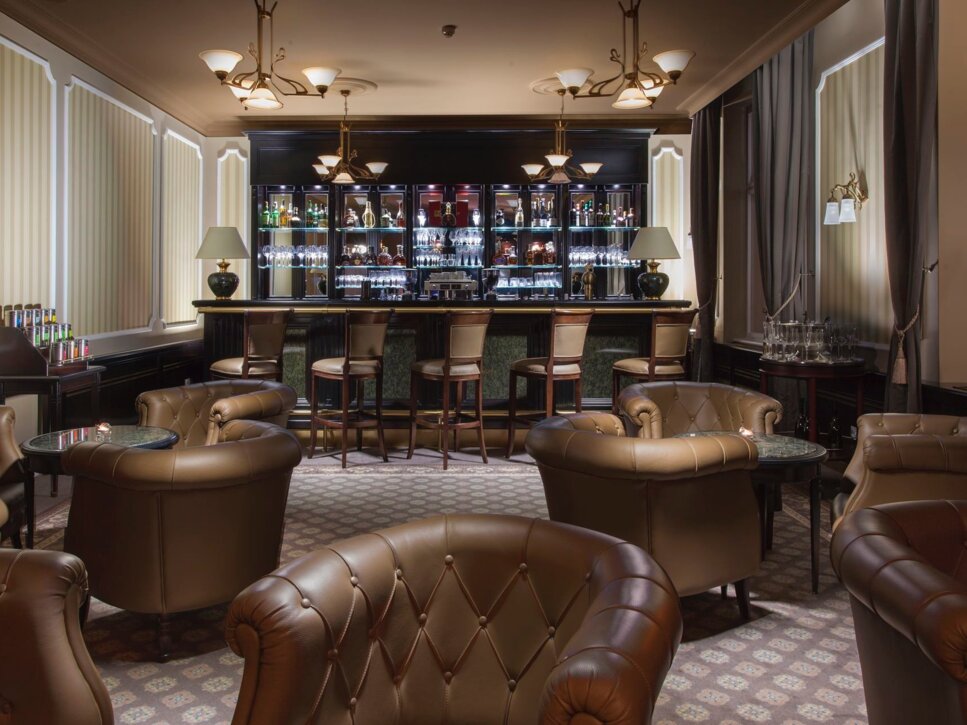 Pro rodinné i firemní večírky, oslavy či sledování sportovních přenosů se svým uspořádáním výborně hodí lobby bar, který pojme až 16 sedících hostů v luxusních kožených křeslech.
